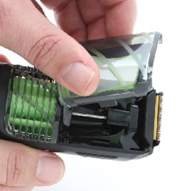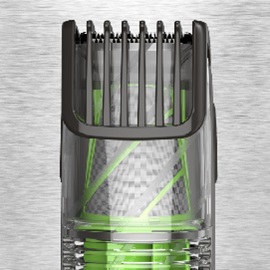 The removable vacuum chamber collects trimmed hairs as you go, making cleanup fast and easy.