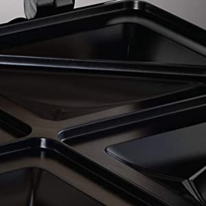 The deep plates of this sandwich maker provide enough space to pack your 4 sandwiches full of a whole range of delicious ingredients. You can make a ham and cheese toastie with a crispy brown texture in no time.