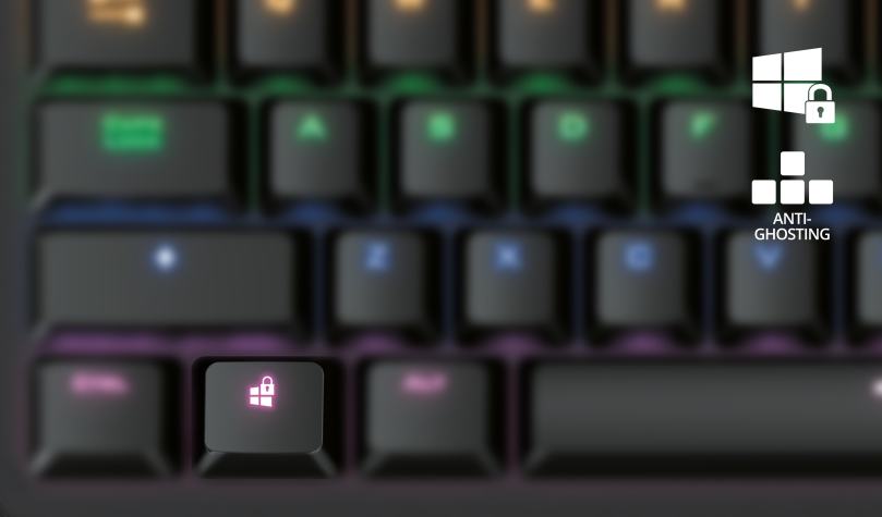 Equipped with full N-key rollover. Thanks to anti-ghosting, every button press is registered and no command will go unnoticed. By enabling the gaming mode, the Windows key is disabled, this makes sure you won’t get kicked out of your game when you accidentally press the Windows key.