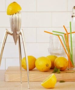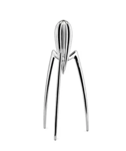 The Juicy Salif, designed by Philippe Starck, is a renowned design icon that many of us are familiar with. Crafted in cast mirror-polished aluminum with protective nylon feet, this citrus squeezer features a pointed base that directs the juice straight into a glass or pitcher positioned below. It is suitable for extracting juice from all types of citrus fruits.