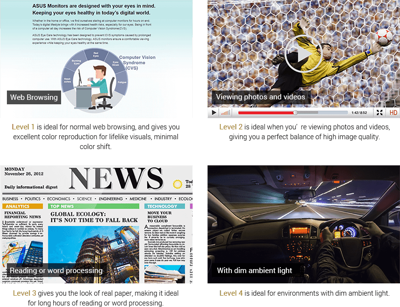 ASUS-exclusive SplendidPlus and VividPixel technologies optimize image and color quality. This approach extends to the strong stand and sleek profile,