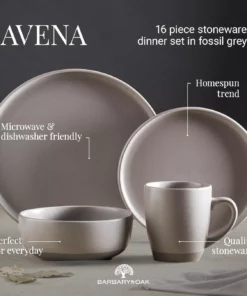 Presented in a subtle shade of grey, this Avena Dinnerware Set creates a calming, understated appearance at your dining setting. The 16-piece set includes 4 dinner plates, 4 side plates, 4 bowls and 4 mugs; each distinguished by a soft, neutral tone and sleek, rounded designs.