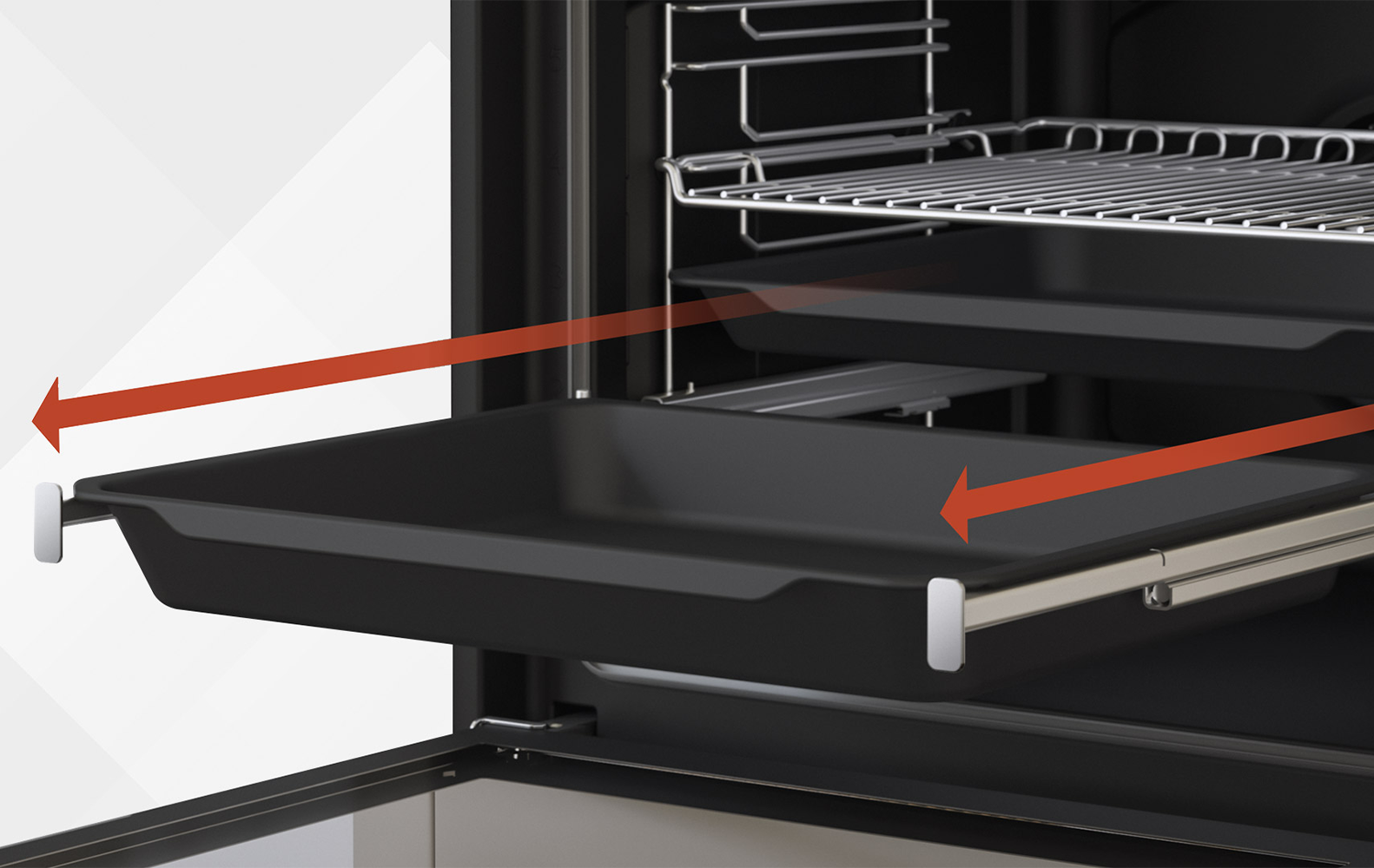 Thanks to the telescopic guides, you can slide out the tray with hot food safely and easily, avoiding accidental burns.