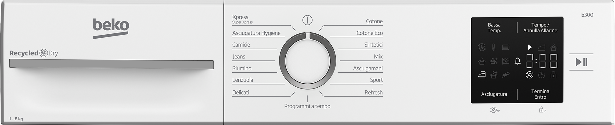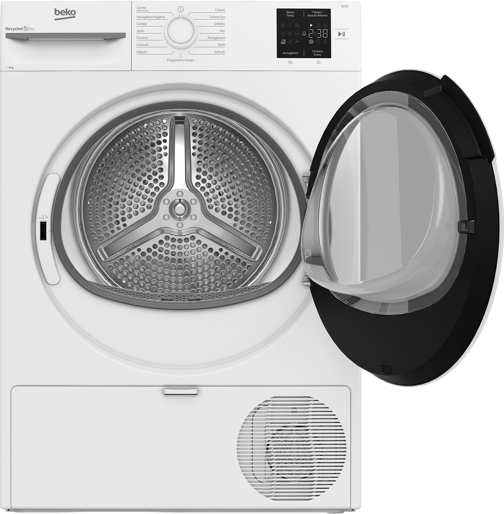Brand: BekoLoad capacity: 8kgNoise Level: 64 dBDisplay: DigitalDrying sensor: OptiSense®Number Of Programs: 15 ProgramsDrying Technology: Heat pumpColour: WhiteEnergy Consumption: 258.6 kWhEnergy Label: DInstallation Type: Free-StandingDimensions: Depth 54.5cm, Height: 84.6 cm, Width 59.8cmWarranty: Parts 3 years & Labour 3 years