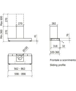 The Bells MODULAR 56 IX recessed hood showcases a sleek outline and groundbreaking features. The retractable front panel safeguards the door while enhancing the capture of culinary vapors. It comes equipped with LED lighting, an electronic control board, and incorporated grease filters.