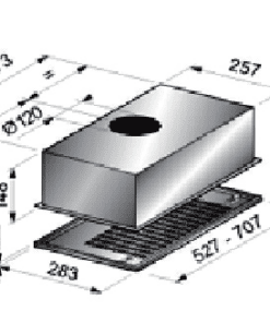 Brand: BellsAir-Flow: (m3/h): 490 max, (m3/h): 612 freeNoise Level: (dB): 45 – 57Exhaust Type: Duct out – RecirculatingLighting: Incandescent 2×40 WPressure (Pa): Absorption 80WControls: Slider 3 speedColour: SilverInstallation Type: Built-inDimensions: Measure (mm): 520, Outlet diameter (mm): 125Warranty: Parts 2 years & Labour 2 years