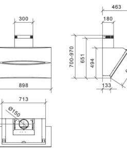 Brand: BellsPower: 275WVersion: Duct OutPressure (Pa): 590 PaAir-Flow: 900 m3 / hEnergy Label: ANoise Level: 63dBLighting: 2×3 W LED LightsControls: Touch controlColour: BlackInstallation Type: Wall-mountedDimensions: (WxDxH) 90 x 46 x 49-97 cmWarranty: Parts 2 years & Labour 2 years