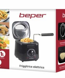 Compact electric fryer with abs external body and non-stick internal container. Lid with porthole and integrated removable and washable odor filter. 1L capacity stainless steel basket. Operating light and temperature adjustable by the practical knob up to 190°C. With stable non-slip feet.