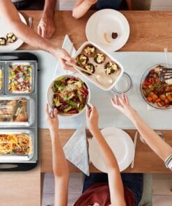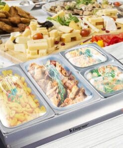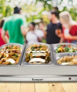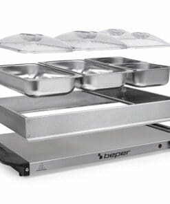 Buffet food warmer to keep food warm without worrying about the risk of burning it. Ideal for family gatherings and personal celebrations, formal events and parties. Two removable 2.4 litre and two 1.1 litre steel trays allow you to serve several meals separately. Transparent lids keep meals on display. By removing the trays, the base transforms into a large hotplate for keeping food hot directly from pots and plates.