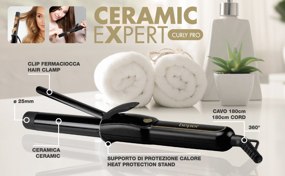 Hair curling iron with a contemporary design, is ideal for quickly creating well-defined waves and curls.