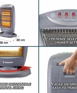 Brand: BeperPower: 1200WSettings: 3 Heat SettingsFunctions: Overheating protection, Auto shutWarranty: Parts 2 years & Labour 2 years