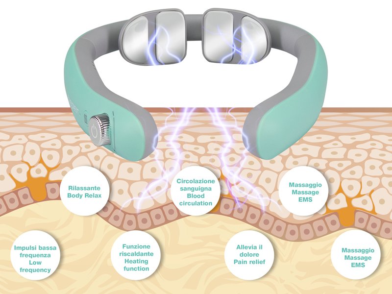 Tailored for the neck region, this electric massager utilizes the cutting-edge EMS low-frequency impulses technology and incorporates a heating feature. By promoting blood circulation within the tissues, it effectively alleviates muscle tension, providing relief from pain and discomfort.