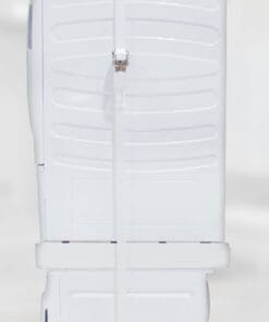 The Beper metal stacking kit for washers and dryers is a pre-assembled solution that can be quickly installed. It is compatible with all front-loading dryers that have a maximum width of 60 cm and a depth ranging from 45-60 cm. The kit features a convenient pull-out wooden tray for easy loading, unloading, and folding of laundry. It includes anti-slip stickers and a 6m safety strap to securely attach the appliances. The kit has a maximum capacity of 200 kg, while the pull-out tray can support up to 15 kg.
