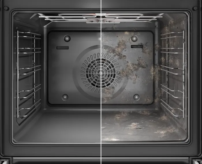Polishing your oven by hand is a tiring and time-consuming task. But thanks to our ovens with pyro self-cleaning, you can say goodbye to this tedious chore. Select the function and press ‘Start’. The oven heats up to a maximum of 480 °C, depending on how dirty it is. In this way, grease and food residues are burned without the use of chemicals. Once the oven has cooled down, all you have to do is remove the burnt leftovers. This makes cleaning a lot faster.