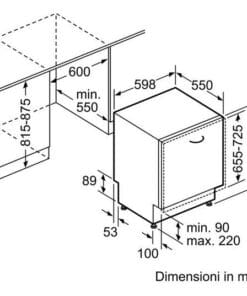 Brand: BoschDishwasher Capacity: 13 DishesEnergy Consumption: 94 kWh / 100 CyclesEnergy Label: ENumber Of Programs: Intensive 70 °C, Auto 45-65 °C, Eco 50 °C, Silence 50 °C, Glasses 40 °C, 1h 65 °CWater Consumption: 9.5LInstallation Type: Built-inNoise Level: 44dBAdditional Features: AquaStopDimensions: (HxWxD) 815 x 598 x 550 mmDishwasher Size: 60cmWarranty: Parts 5 years & Labour 5 years