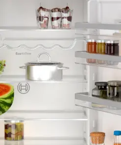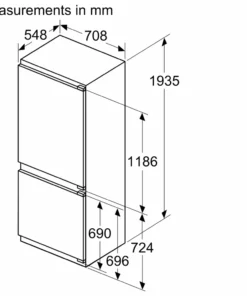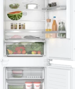 Brand: BoschInstallation Type: Built-inRefrigeration Type: Fridge-FreezersFridge Capacity: 285 LNumber of Shelves in Fridge: 4 adjustable shelvesNumber of Drawers in Fridge: 2 drawersNumber of door compartments in fridge: 3 door compartmentsFreezer Capacity: 98 LNumber of Drawers in Freezer: 3 DrawersCooling system: No FrostEnergy Label: EFunctions: Eco Function, Super freezing, SuperCoolingEnergy Consumption: 256 kWh/AnnumNoise Level: 34dBDimensions: (HxWxD) 1935x708x548 mmWarranty: Parts 5 years & Labour 5 years