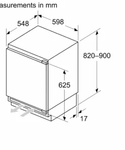 Brand: BoschFridge Capacity: 93LNumber of Shelves in Fridge: 2Number of door compartments in fridge: 2Freezer Compartment: 17LEnergy Label: DEnergy Consumption: 119 kWh/AnnumNoise Level: 34dBInstallation Type: Built-inRefrigeration Type: FridgesWarranty: Parts 5 years & Labour 5 years