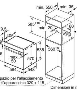 Brand: BoschPower: 3.4 kWOven capacity: 71LCooking Functions: Full width grill, Hotair gentle, Hot Air, Conventional heat, Pizza setting, Bottom heat, Hot air grillingFeatures: EcoClean Direct, 3D HotairTimer: YesEnergy Label: A+Energy Consumption: 0.94 kWh/CycleEnergy Consumption With Fan: 0.69kWh / CycleDimensions: (WxDxH) 594x548x595 mmWarranty: Parts 5 years & Labour 5 years