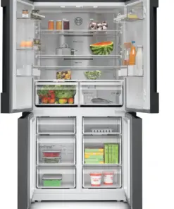 The Bosch KFN96AXEA refrigerator-freezer eliminates the need for manual defrosting by combining cutting-edge NoFrost technology with a huge XXL storage capacity. Its contemporary French-door design and stainless steel finish provide your kitchen style and functionality. It guarantees the best possible freshness for fruits, vegetables, meat, and fish while maintaining reliable cooling thanks to its MultiAirflow and VitaFresh drawers.