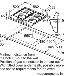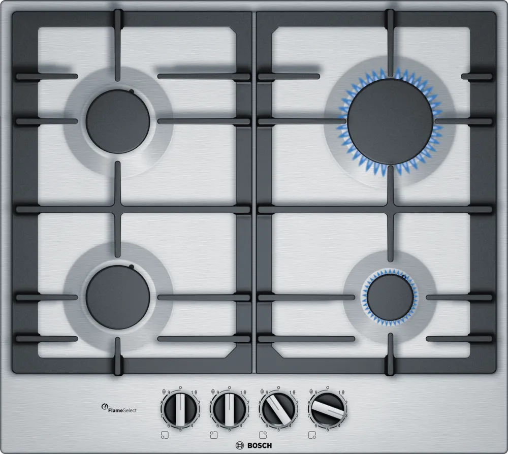 Brand: BoschPower: 7.5 kWCook top type: GasNumber of cooking zones: 4 Gas BurnerCooking zone power: x1 1 kW auxiliary fire, x1 3 kW rapid fire, x2 1.75 kW semi-rapid fireIgnition: IntegratedMaterial: Stainless SteelDimensions: (W x D) 582mm x 520mmWarranty: Parts 5 years & Labour 5 years