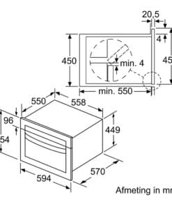 Brand: BoschNumber of cooking functions: Gourmet Recipes, Grill, Grill with fan, Warmer Control Panel: Touch controlEnergy Consumption With Fan: Fan AssistedDimensions: Built-in measure: 56 x 45 cm, Height 45 cm, Width 60 cmAdditional Features: Display, Knobs, Microwave 90W,180W,360W,600W,900WColour: BlackMaterial: Stainless SteelInstallation Type: Built-inOven capacity: 44LWarranty: Parts 5 years & Labour 5 years