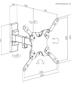 Brand: BrateckMin. Screen Size (inch): 13″Max. Screen Size (inch): 42″Tilt: +5deg to -12degMax Weight: 25 kgVESA: 75×75,100×100,200×100,200×200 mm