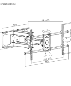 The new Brateck robust and durable large full motion mount is expertly crafted from high gauge steel, specifically engineered to accommodate most 37″-90″ flat panel TVs weighing up to 75kg/165lbs. This versatile mount enables you to easily tilt your flat panel TV for glare control or achieve the perfect viewing angle. It also provides the flexibility to extend your TV from the wall up to 635mm and angle it towards a separate viewing area.