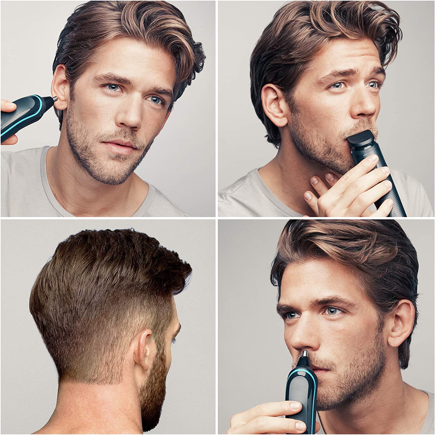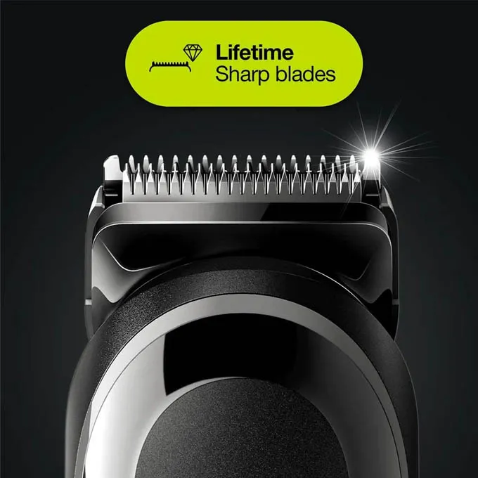 Brand: BraunRechargable: yesSettings: 13 length settingsWashable: Full washable heads and combs, yesCharge time: 10 hours full chargeMinutes of Autonomy: 40 minutes of operating timeDimensions: 1x Comb 3-11mm, 1x Comb 11-21mm, 1x Fixed combs with 1mm & 2mm, 1x Ear & Nose trimmer, 1x Cleaning brush, and Charger.Warranty: Parts 2 years & Labour 2 years