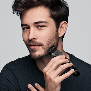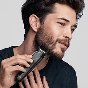 Create accurate lines and edges on neck and cheeks with the Braun beard trimmer head.