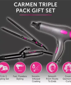 Transform your hair routine with the Carmen C81128 Hair Dryer Gift Set – powerful drying, sleek styling, and must-have accessories, all in one elegant package. Perfect for everyday glam or as the ultimate beauty gift.