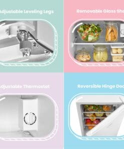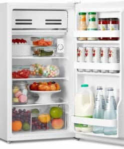 The Comfee RCD93WH1E has a total capacity of 93 liters. With the 3 door shelves, and the transparent vegetable tray. In addition, the device is equipped with interior lighting