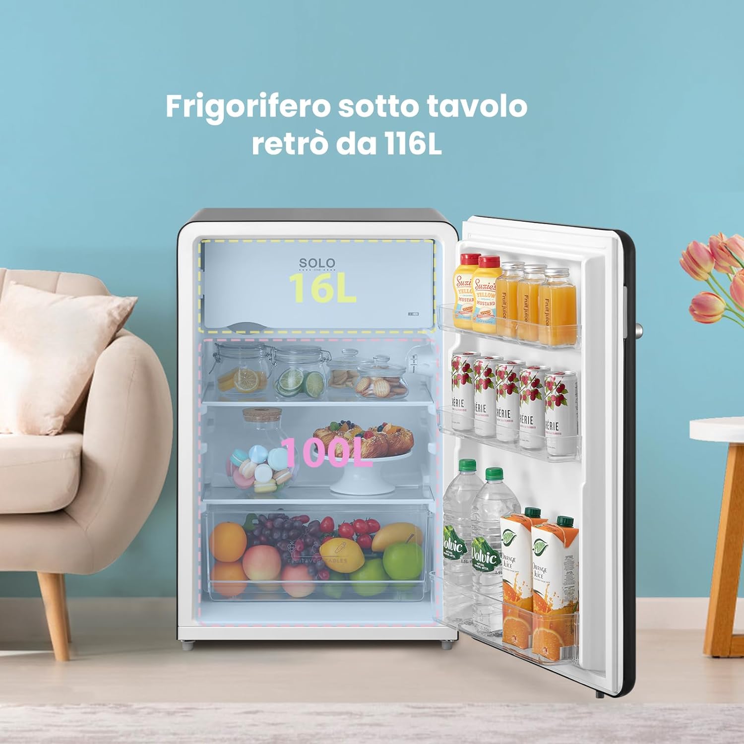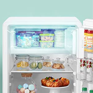 Comfee Solo Series refrigerator has a new R600a energy-efficient compressor to cool food more quickly while using less energy. It also has a sleek, classic vintage style. You can change the temperature by 1°C to 10°C with the movable thermostat.