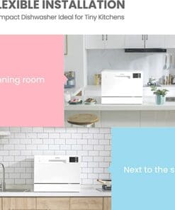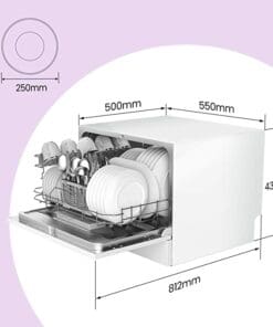 Brand: ComfeeDishwasher Capacity: 6 DishesNumber Of Programs: Intensive, Universal, Eco, Glass, 90mins wash, RapidEco Program Duration: 03:50Energy Label: FEnergy Consumption: 61kwh per 100 cyclesWater Consumption: 6.5litersNoise Level: 47dBDimensions: Depth 50cm, Height 43.8cm, Width 55cmInstallation Type: Free-StandingDishwasher Size: Table TopWarranty: Parts 2 years & Labour 2 years