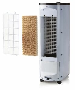With the DOMO DO156A air cooler, you are getting three appliances in one: an air cooler (cold air), a fan and a humidifier. So, you can set it according to your needs at any given time. The wheels and handle make it easy to move around. The appliance can also oscillate from left to right, which means the cold air is distributed evenly over a greater range. Thanks to the 300 m³/h cooling membrane, the unit achieves high cooling efficiency. It also has a timer, and the fan has three speeds to choose from.
