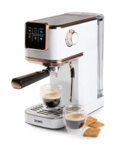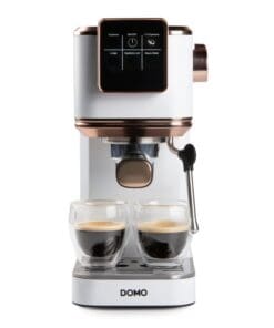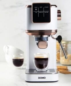 Brand: DOMOPower: 1350WTank Capacity: 900mlBar Pressure: 20 BarSuitable for: Ground coffee, Coffee pads, Coffee cupsSpeciality coffee: Cappuccino, Espresso, Latte macchiato, Iced coffeeAccessories included: Measuring spoon, Permanent filter, PestleDimensions: (WxHxD) 15 x 32 x 41 cmWarranty: Parts 2 years & Labour 2 years