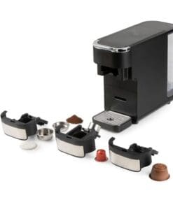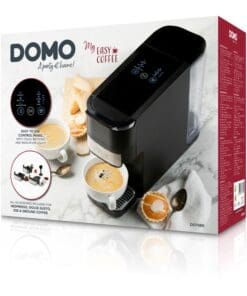 The DOMO DO748K is a user-friendly and versatile 4-in-1 coffee machine, compatible with Nespresso and Dolce Gusto capsules, ESE pods, and ground coffee. With a fast heat-up time of under 45 seconds and a clear touch panel with indicator lights, brewing your favourite coffee is quick and easy. The machine automatically detects the type of holder and adjusts the temperature precisely for optimal results.