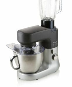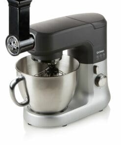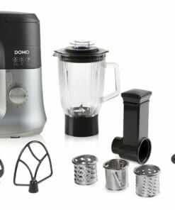 Brand: DOMOPower: 1000WBowl Capacity: 4.5 LSettings: 8 Speed settingsFeatures: Dishwasher-proofIncluded in the set: Balloon whisk, Blender, Dough hook, Meat grinder, Mixing bowl, Splash guard lid, Vegetable cutter, WhiskWarranty: Parts 2 years & Labour 2 years