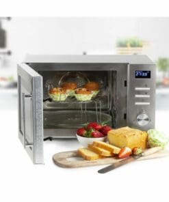 The DOMO DO2334CG microwave is a versatile appliance that caters to a variety of needs. It has the ability to warm, defrost, bake, cook, grill, and more, all thanks to its three-in-one functionality: microwave, grill (with grill rack), and convection oven. With a spacious 34-liter capacity, four combination settings, and five power options, this combination microwave oven adds great value to your kitchen.
