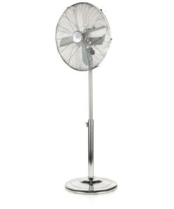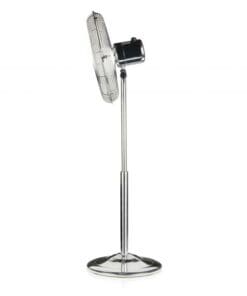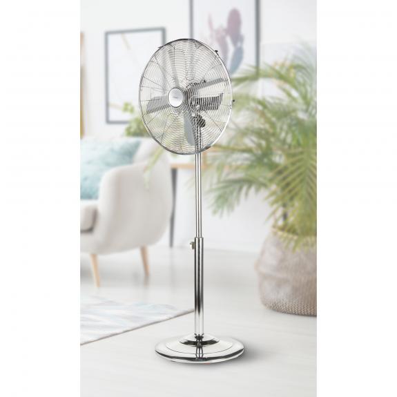 Freestanding fan with 4 metal blades and steel protection grille with a diameter of 40 cm. Three speeds can be set, with operation light when in action. Adjustable height up to 127 cm. Complete with automatic oscillation and adjustable tilt. 50W motor and round base.
