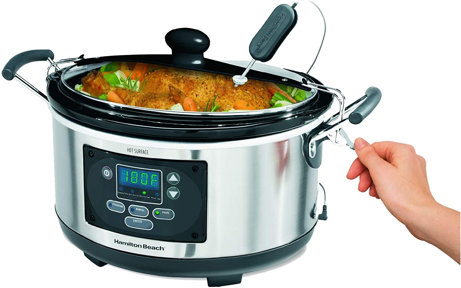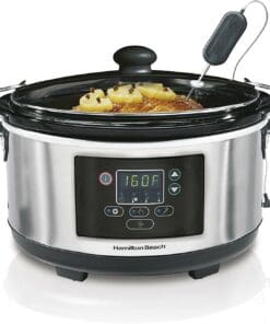 The Hamilton Beach Set and Forget Slow Cooker is ideal for any family meal, with three options for easy and automatic cooking such as a probe, program, and manual.