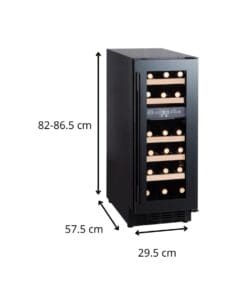 Brand: HCKNumber of Shelves in Fridge: 6 ShelvesTemperature setting: Upper Level 4C – 12C / Bottom Level 12C-22CFeatures: Anti-Vibration System, UV Free LightBottle Capacity: 18 BottlesDimensions: (HxW) 82 x 29.5 cmInstallation Type: Built-inRefrigeration Type: Wine CoolersWarranty: Parts 2 years & Labour 2 years