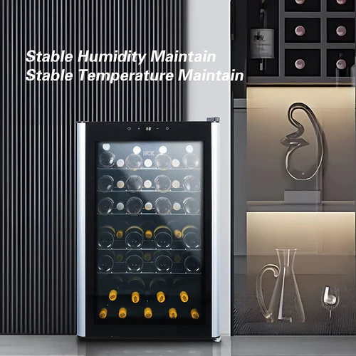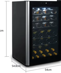 Brand: HCKFridge Capacity: 115LNumber of Shelves in Fridge: 5 Chrome ShelvesEnergy Label: GColour: BlackFeatures: Anti-Vibration System, UV Free LightBottle Capacity: 49 BottlesConsumption: 138kWh/YearDimensions: Height 85cm, Width 54cm, Depth 55cmInstallation Type: Free-StandingRefrigeration Type: Wine CoolersWarranty: Parts 2 years & Labour 2 years
