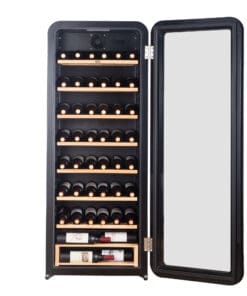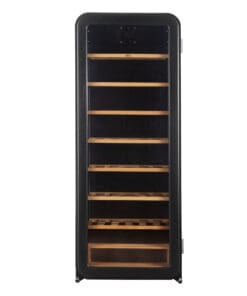 Brand: HCKNumber of Shelves in Fridge: 8 Wooden ShelvesEnergy Label: GFeatures: Anti-Vibration System, UV Free LightBottle Capacity: 76 BottlesNoise Level: 38 dBInstallation Type: Free-StandingRefrigeration Type: Wine CoolersDimensions: (WxHxD) 60x152x43cmWarranty: Parts 2 years & Labour 2 years