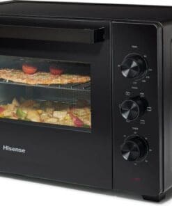 With the Hisense mini ovens you can choose between five different cooking combinations (upper and lower heating element in combination with the grill and rotisserie), set the temperature between 90 and 220°C and the timer up to 60 minutes