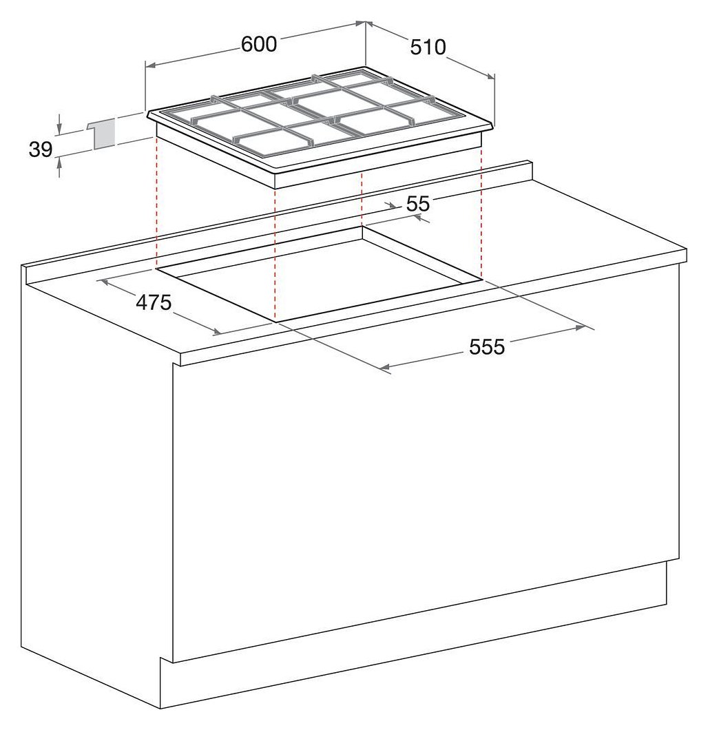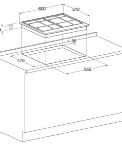 Brand: HotPoint AristonNumber of cooking zones: 4 Gas BurnerIgnition: Integrated electronic ignitionCook top type: GasDimensions: (WxHxD) 590 x 33 x 510 mmWarranty: Parts 2 years & Labour 2 years