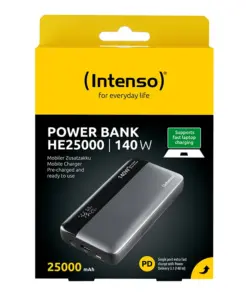 Brand: IntensoPower: 140WOutput: USB-C2 5,0 V/DC 3,0 A, 9,0 V/DC 3,0 A, 12,0 V/DC 3,0 A, 15,0 V/DC 3,0 A, 20,0 V/DC 5,0 A (max. 100,0 W)Battery: 20,000mAhAccessories: USB-C to USB-C charging cable with integrated E-marker chip for PD 3.1 support up to 140 W (28 V / 5 A)Warranty: Parts 2 years & Labour 2 years