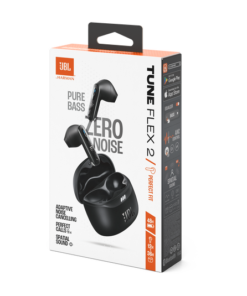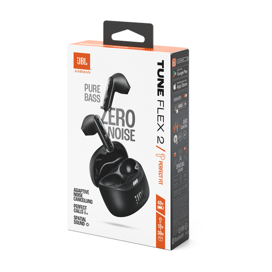 Take on your day one song at a time with JBL Tune Flex 2 true wireless earbuds featuring Adaptive Noise Cancelling. They deliver up to 48 hours of exceptional JBL Pure Bass Sound and JBL Spatial Sound, while the ergonomic (and water and dust resistant) design gives you all-day comfort in any weather. Enjoy perfect-sounding calls without ambient noise, all managed using intuitive touch controls. With Adaptive Noise Cancelling and Smart Ambient technology, you can tune out the world, or choose how much you engage with your surroundings. You can even personalize your sound experience with the JBL Headphones App and tailor audio around you with Personi-Fi 3.0. Pop in the JBL Tune Flex 2 and experience your world your way.