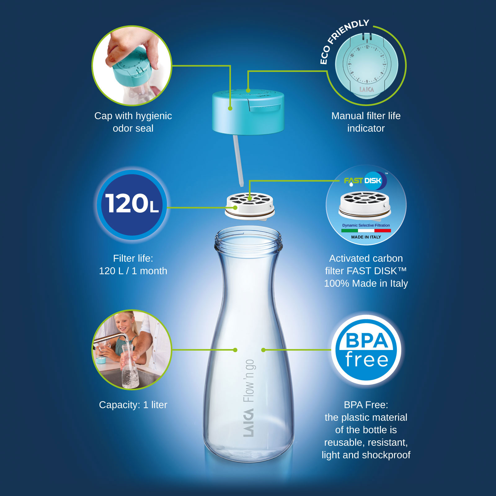 The Laica Flow’n go filter bottle allows you to obtain water with a good taste instantly.