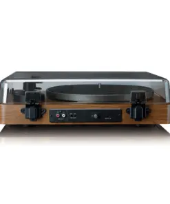 The Lenco LBTA-165WD is a fully automatic record player that combines the best of traditional vinyl sound with modern technology. Thanks to auto start and auto return, minimal manual interaction is required: the tonearm automatically moves to the correct position and returns to its resting position after playback. With Bluetooth® 5.3 transmission, you can easily stream your favourite music to any compatible speaker or headphones, while the built-in pre-amplifier ensures a rich, dynamic sound. The LBTA-165BK combines a wooden casing with a metal turntable platter and a metal tonearm fitted with an AT3600L cartridge.