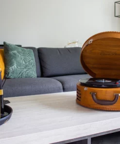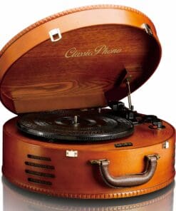The Classic Phono TT-34 is a magnificent and stylish turntable with a true retro look. As the turntable is protected by a stylish and handy round case made from wood, you can take it with you wherever you go. So you always have the TT-34 and your favourite music to hand wherever you are. The Classic Phono TT-34 features a ceramic stereo cartridge with integrated stylus.